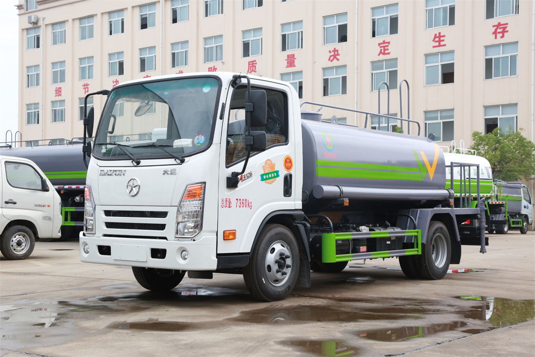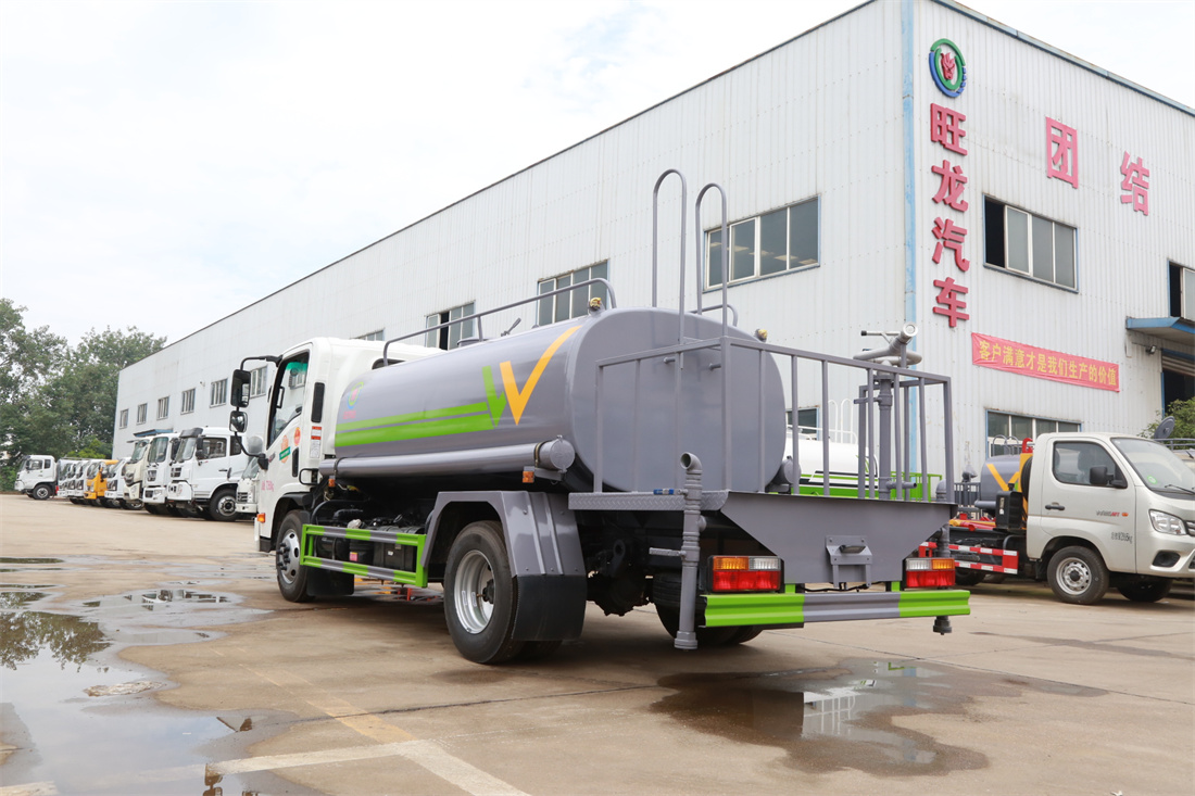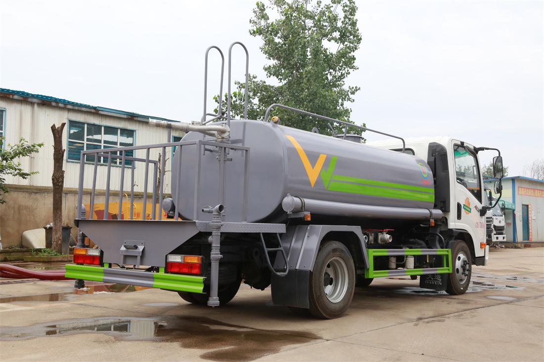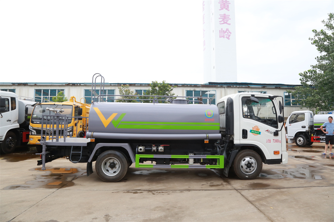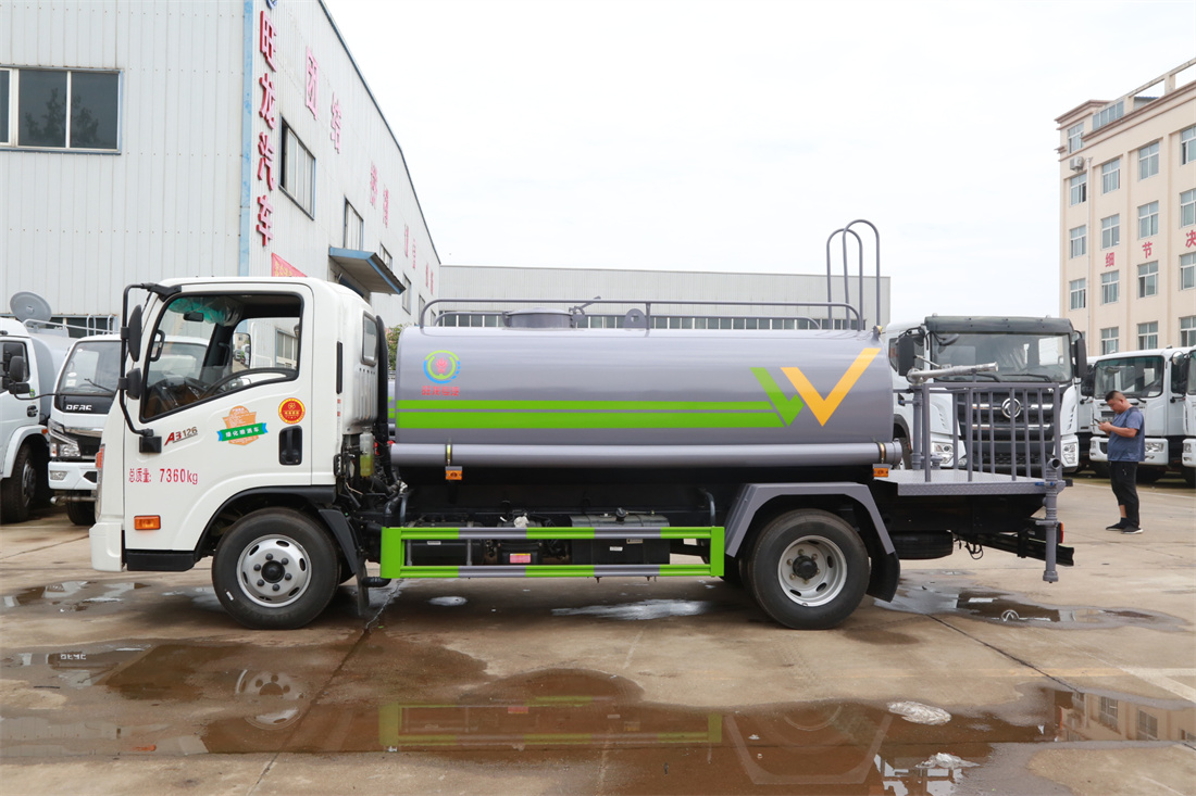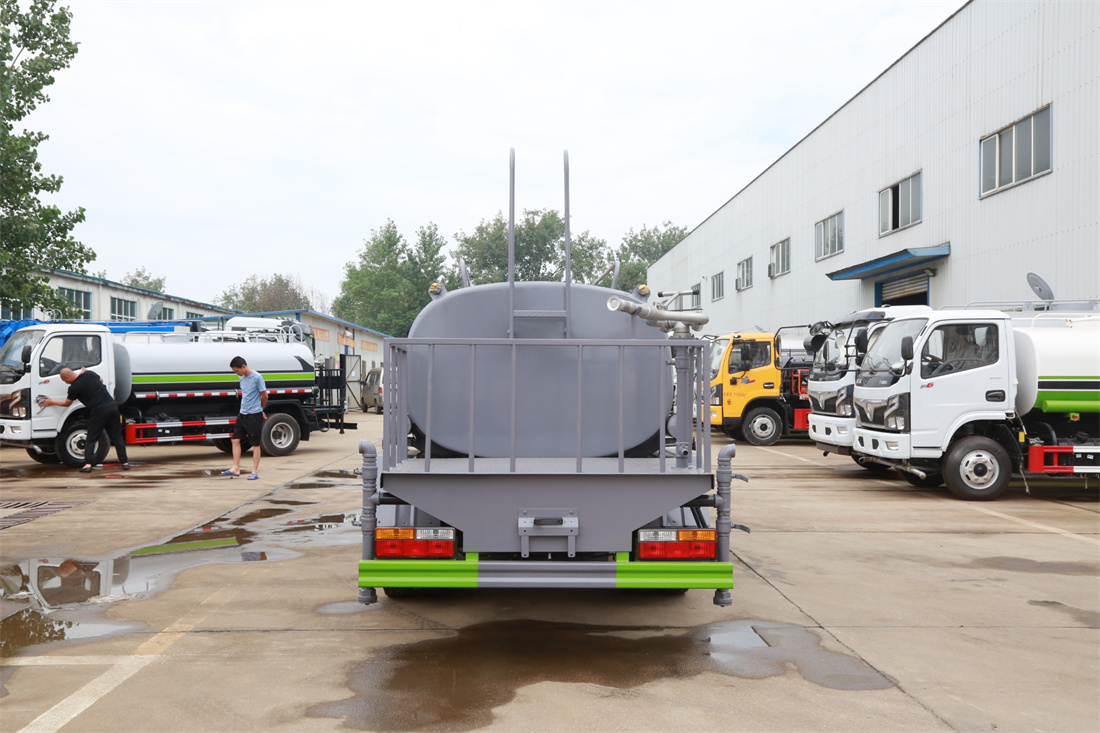 灑水車前裝有鴨形噴嘴或圓頭沖嘴,后面裝有圓柱開灑水噴嘴或蓮蓬頭噴嘴,后部有一工作平臺,裝配有水炮。后部還可裝8個噴嘴(選裝)。
