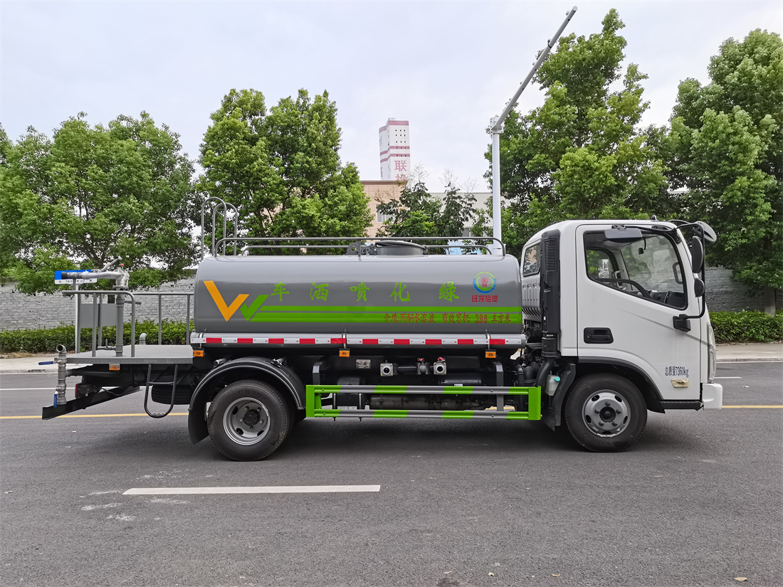 灑水車前裝有鴨形噴嘴或圓頭沖嘴,后面裝有圓柱開灑水噴嘴或蓮蓬頭噴嘴,后部有一工作平臺,裝配有水炮。后部還可裝8個噴嘴(選裝)。