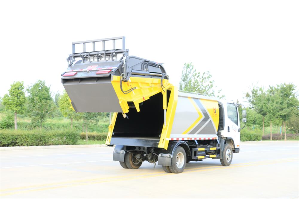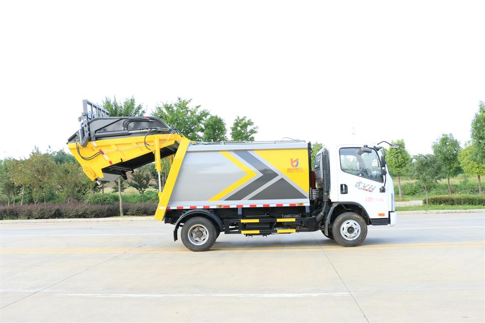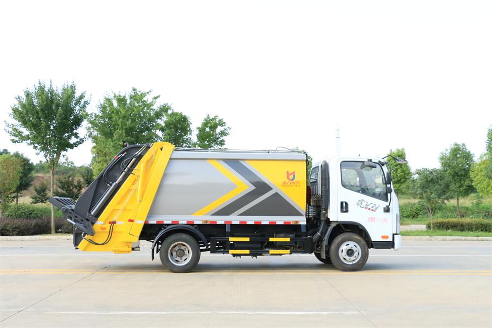 上裝配置:垃圾箱容積:6方,新款平面弧形廂體,廂體材料為武鋼優質碳鋼,PLC一鍵操作**,手電一體操作模式,兩側雙電控,帶駕駛室內操作,底板支撐加強,雙向壓縮,開放式易清潔污水箱。壓縮式垃圾車采用機電液一體化技術,借助機、電、液聯合自動**系統、電腦**、手動操作系統,通過填裝器和推鏟等專用裝置,實現垃圾倒入、壓碎或壓扁、強力裝填,把垃圾擠入車廂并壓實和推卸,污水全部進入污水廂,解決了垃圾運輸過程中的二次污染的問題。壓縮式垃圾車具有自動反復壓縮以及蠕動壓縮功能,壓縮比高、密封性好、裝載量大﹑操作方便、環保性好﹑整車利用功率高等優點。作業自動化,垃圾收集方式簡便、高效。后翻轉機構選裝:1、掛塑料桶式翻轉機構;2、掛鐵桶式翻轉機構;3、擺臂式翻轉機構; 4、簸箕斗式翻轉機構。