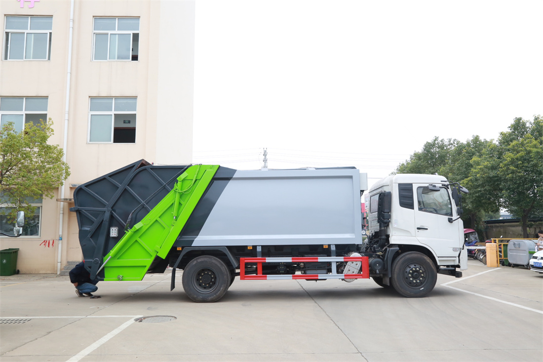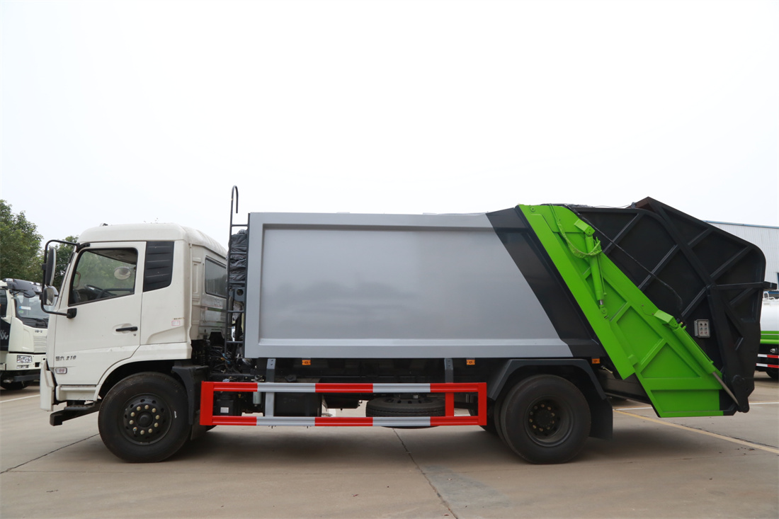 上裝配置:垃圾箱容積:14方,新款平面弧形廂體,廂體材料為武鋼優(yōu)質(zhì)碳鋼,PLC一鍵操作**,手電一體操作模式,兩側(cè)雙電控,帶駕駛室內(nèi)操作,底板支撐加強(qiáng),雙向壓縮,開放式易清潔污水箱。壓縮式垃圾車采用機(jī)電液一體化技術(shù),借助機(jī)、電、液聯(lián)合自動(dòng)**系統(tǒng)、電腦**、手動(dòng)操作系統(tǒng),通過(guò)填裝器和推鏟等專用裝置,實(shí)現(xiàn)垃圾倒入、壓碎或壓扁、強(qiáng)力裝填,把垃圾擠入車廂并壓實(shí)和推卸,污水全部進(jìn)入污水廂,解決了垃圾運(yùn)輸過(guò)程中的二次污染的問(wèn)題。壓縮式垃圾車具有自動(dòng)反復(fù)壓縮以及蠕動(dòng)壓縮功能,壓縮比高、密封性好、裝載量大﹑操作方便、環(huán)保性好﹑整車?yán)霉β矢叩葍?yōu)點(diǎn)。作業(yè)自動(dòng)化,垃圾收集方式簡(jiǎn)便、高效。后翻轉(zhuǎn)機(jī)構(gòu)選裝:1、掛塑料桶式翻轉(zhuǎn)機(jī)構(gòu);2、掛鐵桶式翻轉(zhuǎn)機(jī)構(gòu);3、擺臂式翻轉(zhuǎn)機(jī)構(gòu); 4、簸箕斗式翻轉(zhuǎn)機(jī)構(gòu)。