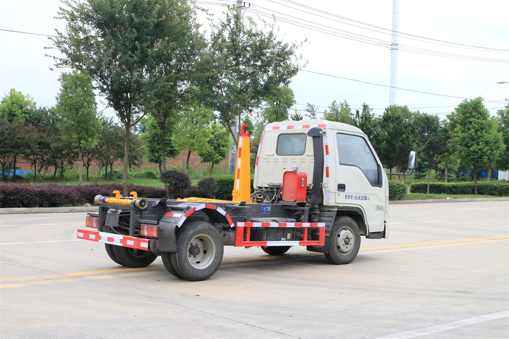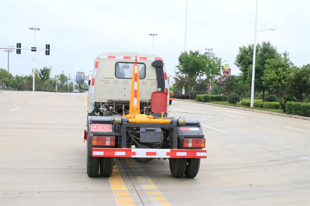勾臂式垃圾車(車廂可卸式垃圾車)介紹: 車廂可卸式垃圾車又叫拉臂式垃圾車,是一種采用高新設(shè)計可伸縮的鉤臂,實現(xiàn)垃圾廂的二次吊裝,自吊上放下,可自行傾倒垃圾的環(huán)衛(wèi)設(shè)備。 拉臂式垃圾車結(jié)構(gòu)簡單,操作穩(wěn)定方便,裝卸效率高,機(jī)械化程度高,節(jié)省人力。鉤臂垃圾車一車可帶多個垃圾廂,在裝卸的運(yùn)輸過程中可有效地避免二次污染。 拉臂垃圾車采用高新設(shè)計可擺動的鉤臂,垃圾箱由框架、開啟油缸、滑輪、后門和若干加強(qiáng)框架與鋼板焊接而成。調(diào)換貨廂快捷方便,貨廂上帶蓋(倒垃圾時可翻開),鉤臂垃圾車?yán)鴰w可選用碳鋼、不銹鋼材質(zhì)、內(nèi)部采取環(huán)氧樹脂防腐處理,改裝部分與原車底盤為可分離式,維修方便且保持了原車的機(jī)動性及行駛性能。