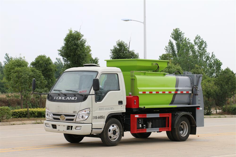 上裝配置:罐體容積4m3,配備120L/240L掛桶提升翻轉機構,液壓系統,后蓋液壓鎖緊開啟,罐體可以舉升自卸,尾部帶自流閥;用于運輸液態垃圾,其特點操作簡單,密封性好,無泄漏,無異味;可選裝固液分離功能,推板擠壓功能,常用于餐館的垃圾轉運處理。