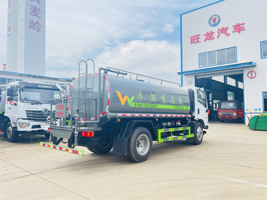 灑水車性能特點:前沖(噴)后灑,帶側噴,罐體后帶工作平臺,平臺上安裝綠化灑水炮,灑水炮可360旋轉,可連續調成直沖狀、大雨、小雨、毛毛雨,帶安全護欄,配備全國質量評比**名的杭州威龍大功率專用  灑水泵,泵可自吸自排,安裝過濾網,帶消防接口,可通過消防栓進水,帶自流閥,隨車選裝20米綠化卷盤,可噴灑農藥。