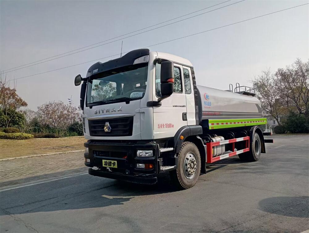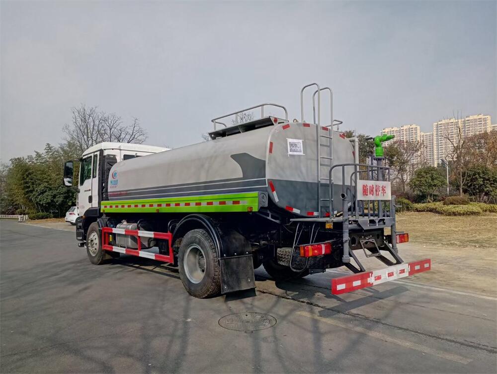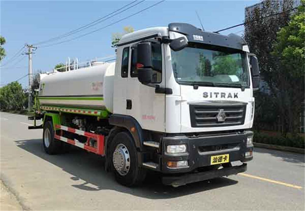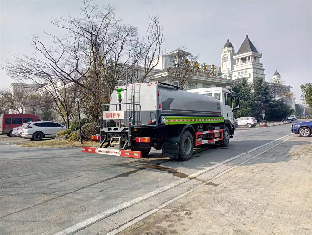 灑水車前裝有鴨形噴嘴或圓頭沖嘴,后面裝有圓柱開灑水噴嘴或蓮蓬頭噴嘴,后部有一工作平臺,裝配有水炮。后部還可裝8個噴嘴(選裝)。