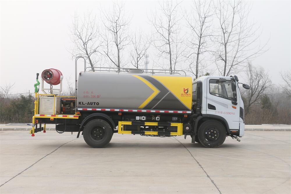 主要由發動機帶動變速箱,變速箱上安裝的取力器帶動灑水泵,灑水泵產生動力,將罐體內部的液體通過管網噴灑出去。工作范圍:自吸高度:≥7m,灑水寬度:≥14m,**大射程:≥28m;可調節成柱狀,射程≥28m;也可調節成霧狀,射程≥5m。