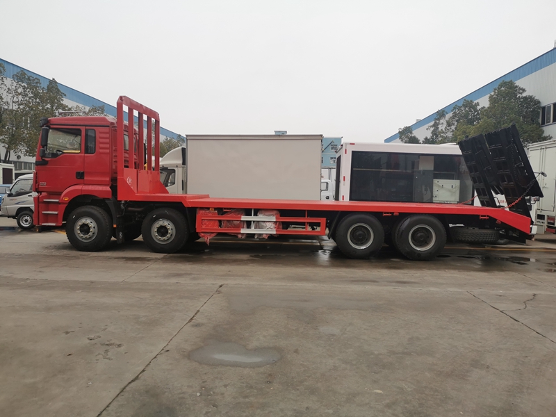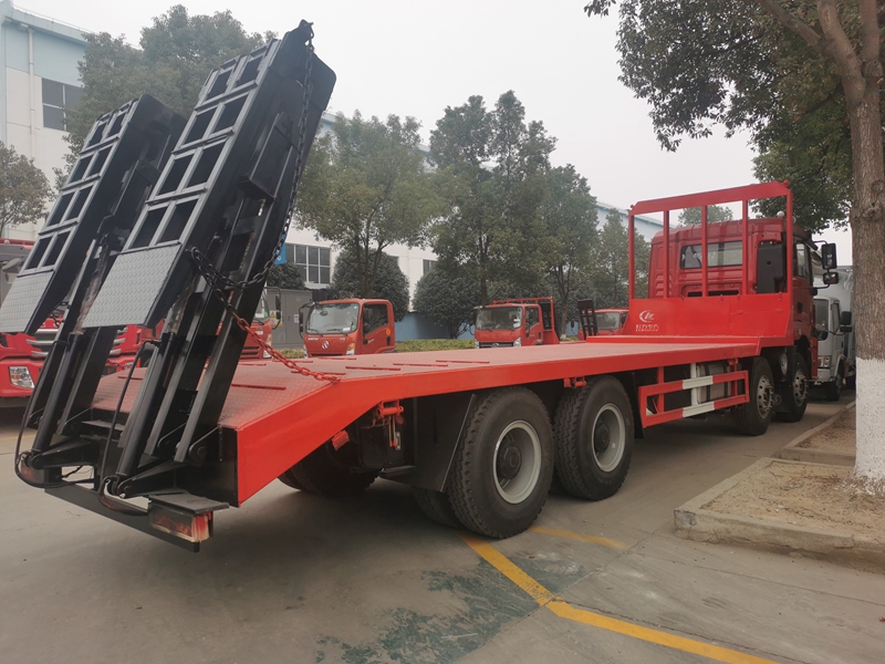 其他備注:該車專用裝置為平板,用于工程機械和一些不可拆卸貨物的長途運輸.防護材料:Q235碳鋼,連接方式:左右側面與平板縱梁采用焊接連接, 后部防護與車架采用焊接連接,后部防護斷面尺寸(mm):50×120,后部防護離地高度(mm):490;隨底盤選裝同系列駕駛室、遮陽罩及保險杠,選裝不同樣式的爬梯.ABS系統生產廠家及型號為:廣州市科密汽車制動技術開發有限公司/CM4XL-4S/4K(4S/4M), 西安正昌電子有限責任公司/ZQFB-V, 浙江萬安科技股份有限公司/VIE ABS-Ⅱ;安裝具有衛星定位功能的行駛記錄儀.發動機WP12.375E50 對應的油耗值為:40.48。整車長/軸距/后懸對應關系為(mm):11900/1800+4575+1400/2600,11300/1800+3975+1400/2600,10900/1800+3575+1400/2600,10400/1800+3000+1400/2675.選裝不同樣式的爬梯結構。